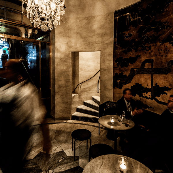 The dining hall was designed in 1968 by the legendary Yngwe Gamlin, who, inspired by the world of theatre, created a timeless space. Thanks to its location, the restaurant is an oasis that offers a secluded and intimate space in the otherwise bustling neighbourhoods.