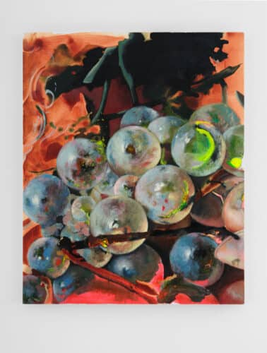 Vindruvor och blommor samt porträtt av en ung man i olika tillstånd av berusning, kanske av lust,  kanske vin eller sång, kanske av helt andra anledningar. Dessa målningar bildar stommen i den utställning som visas på Teatergrillen februari till april. De är del av en större målerisvit kallad ’The Aesthetics of Fruit’ av Martin Gustavsson som behandlar frågor kring representation och visibilitet. Serien förhåller sig till måleriets unika möjlighet att beskriva det synliga men också osynliga i hur vi benämner världen omkring oss. Hur kan vi representera och synliggöra det som inte syns?