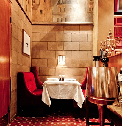 En viktig del av upplevelsen som vi vill att våra gäster ska få erfara – är service i världsklass och matsalsarbete. Idag är det norm att mat kommer upplagd på tallriken som ställs framför gästerna. Vi gillar att visa upp vårt hantverk, därför är det en del av upplevelsen att man får se när vi benar ur fisken, trancherar köttet eller flamberar de svenska vinteräpplena – precis vid bordskanten. Våra sommelierer finns dessutom alltid redo och har en av Stockholms bästa vinkällare att välja från. De utgår från er smak, maten och tillfället för att ge er den bästa föreningen mellan mat och vin. Hos oss är det vänligt, personligt, professionellt och följsamt.